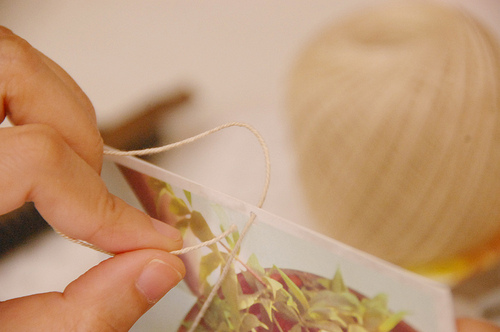 On your last photo, tie a knot at the bottom to lock the yarn. Then do the same procedure on the next batch of photos.