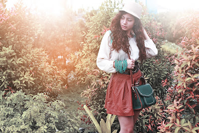 | Top and skirt : Forever 21 Beaded necklace (used as bracelet): Forever 21 | Hat, belt, bag: Parfois Photo by Aidx Paredes |
